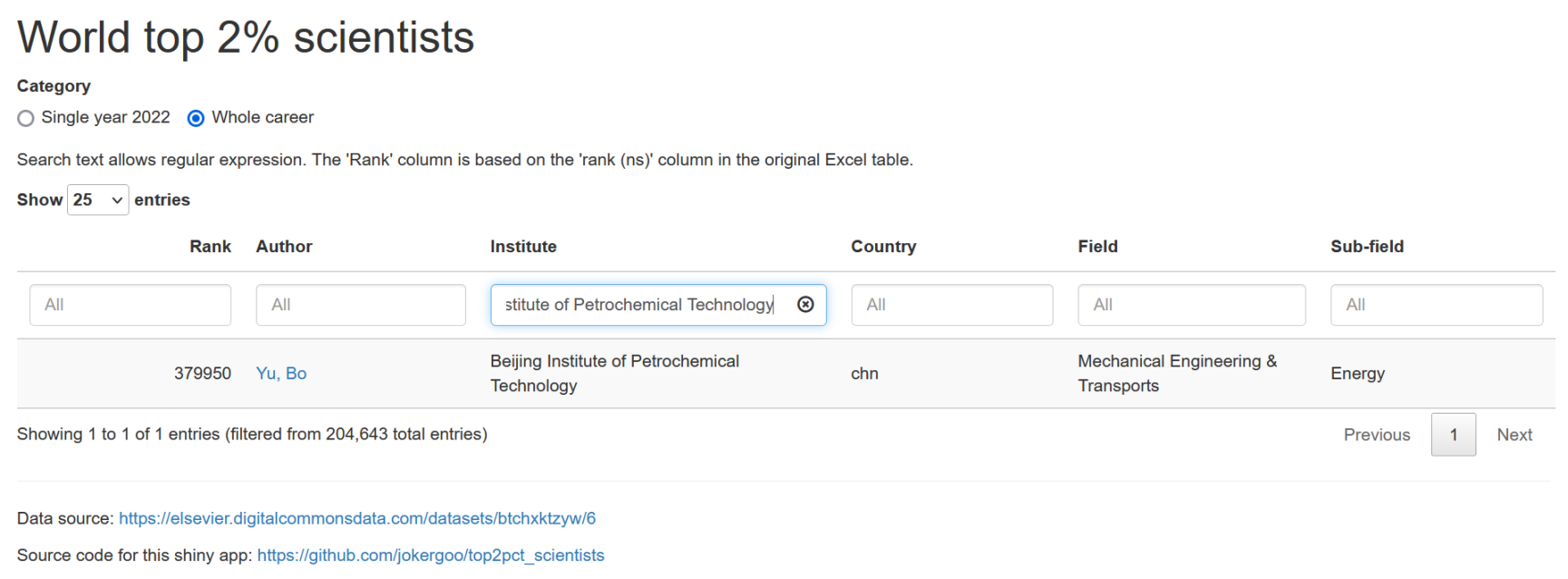 近日,美國斯坦福大學和愛思唯爾數據庫(Elsevier)發布《2022年度全球前2%頂尖科學家榜單》(World’s Top 2% Scientists),包括“2022年度科學影響力排行榜”和“終身科學影響力排行榜(1960-2022)”兩個榜單。我校宇波教授、孫東亮教授、王楠楠副教授3名教師入選“2022年度科學影響力排行榜”,其中宇波教授榮登 “終身科學影響力排行榜”。