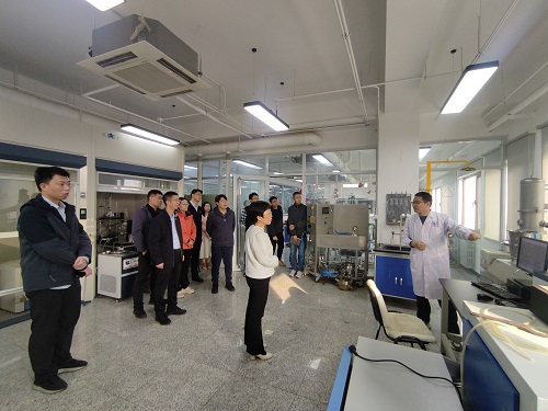 在能源高效利用實驗室,楊緒飛老師介紹了聚光太陽能模擬器、高溫高壓三軸巖石力學壓機等大型實驗平臺及導熱系數儀、臺式掃描電鏡、高溫氣氛爐等大型儀器設備,同時介紹了能源與動力工程、新能源科學與工程專業人才培養概況及團隊開展的科學研究工作。