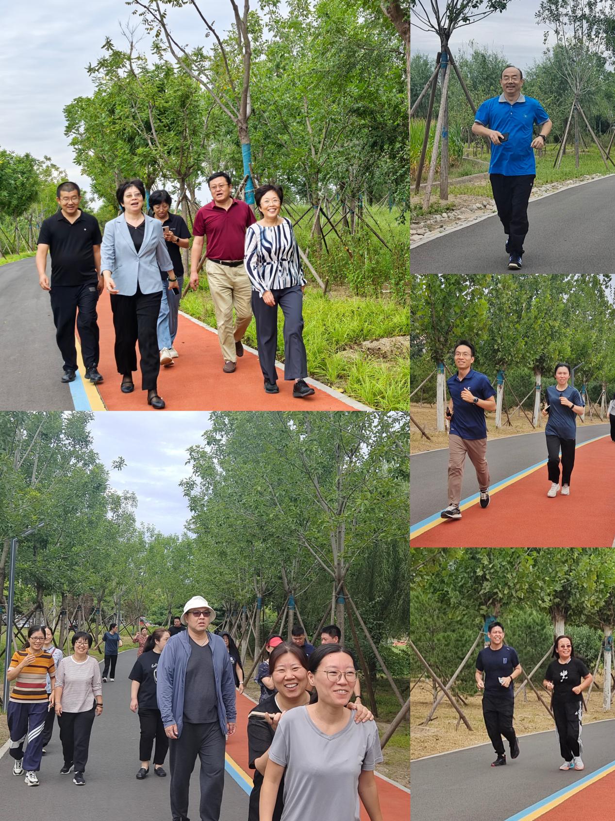 恰逢雨后,空氣清新,秋高氣爽,教職工們一邊健步行走,一邊相互交談,不時發出爽朗的笑聲,共同經歷了一段健康快樂的旅程。有些老師興致勃勃地慢跑起來,熱身、拉伸、蹦跳,體驗著運動的樂趣。沿途的風景與歡聲笑語交織成一幅幅溫馨的畫面,充分展現了教職工朝氣蓬勃、昂揚向上的精神風貌。