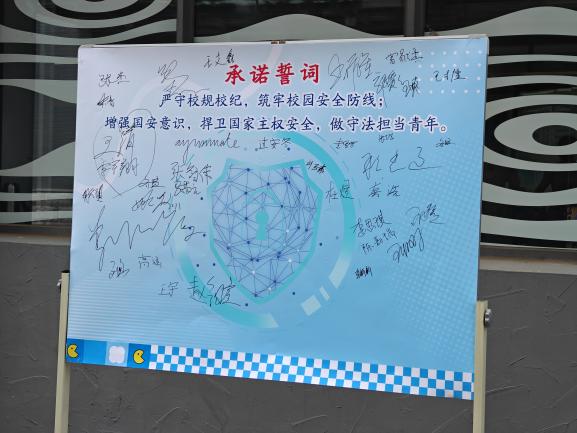 在活動現場,參與者共同宣讀了“嚴守校規校紀,筑牢校園安全防線;增強國安意識,捍衛國家主權安全,做守法擔當青年”的錚錚誓言,并在簽名墻上簽名,以實際行動表達守護校園安全的堅定決心。