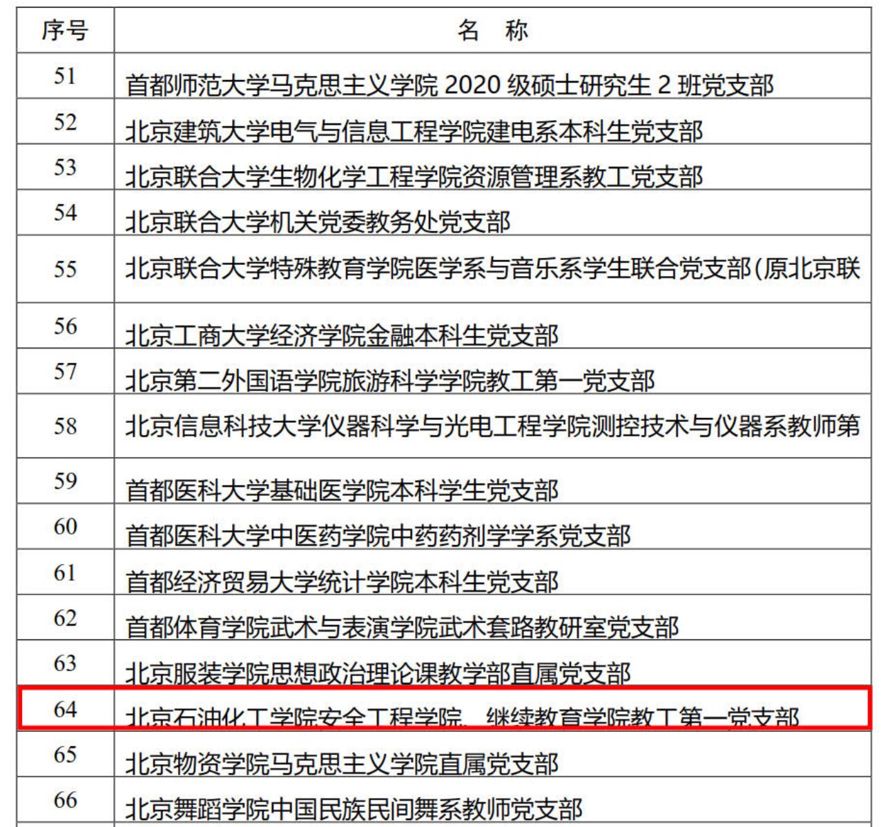 近日,教育部公布了第三批新時代高校黨建示范創建和質量創優工作建設單位驗收結果,我校安全工程學院(繼續教育學院)黨委教工第一黨支部順利通過驗收。