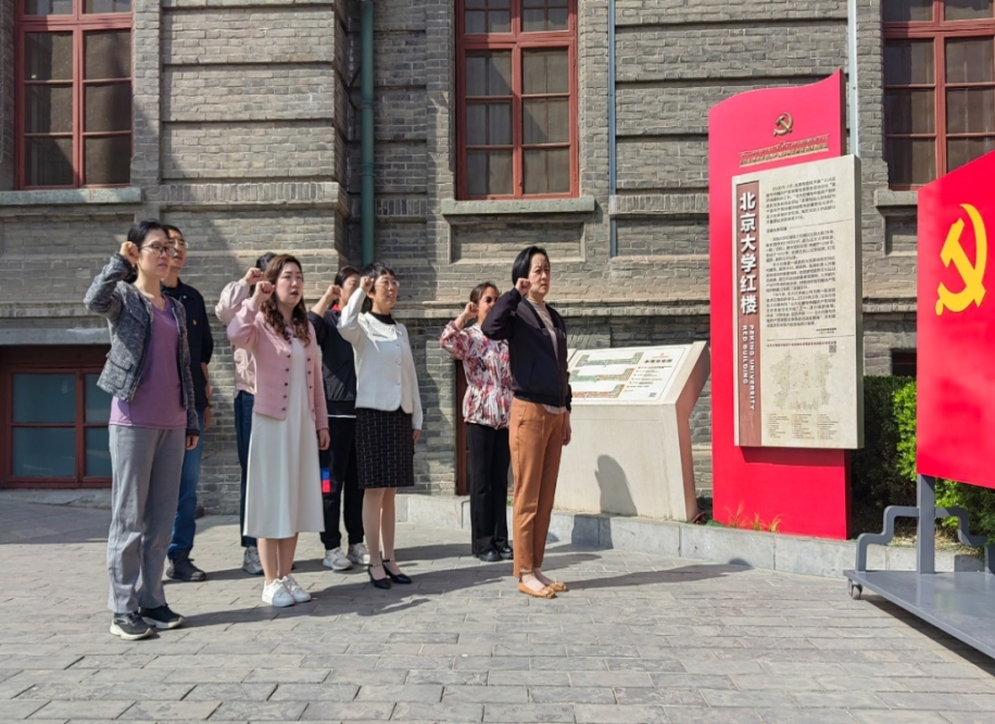 北大紅樓是新文化運動和五四運動的策源地,是馬克思主義思想在中國早期傳播的主陣地,也是中國共產黨在北京早期革命活動的歷史見證地,在中國共產黨創建史上具有重要地位。在樓前,全體黨員面對黨旗莊嚴肅立,右手握拳齊肩舉起,鏗鏘有力地誦讀《中國共產黨入黨誓詞》,以飽滿的熱情和昂揚的姿態,表達著為黨的事業奮斗終身的決心和堅定信念。
