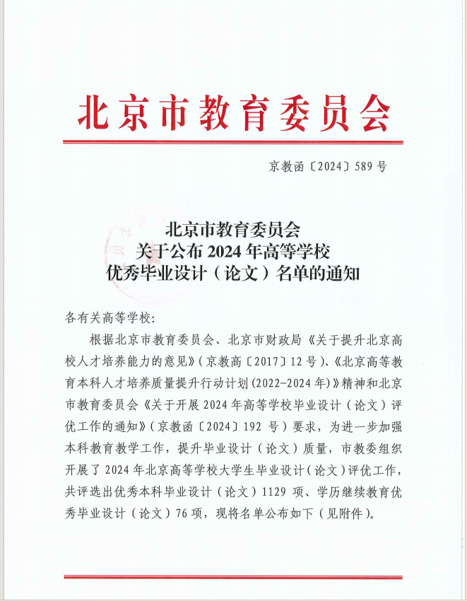 喜報!我校兩篇繼續教育本科畢業設計(論文)獲評北京市普通高校優秀畢業設計(論文)