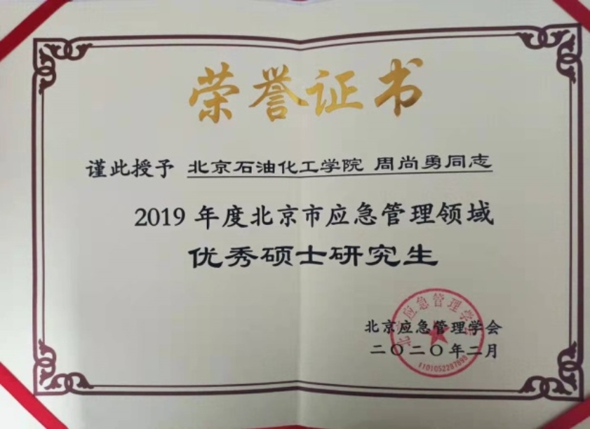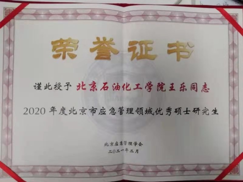 培養的碩士研究生連續三年榮獲“北京市應急管理領域優秀碩士研究生”,為北京市屬高校唯一獲獎單位。