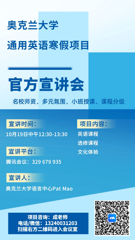 為配合現已啟動的我校2024年寒假境外短期交流項目報名工作,讓同學們能更深入了解各個項目信息,近期學校將組織三場線上項目宣講會,歡迎同學們及家長掃碼參加。