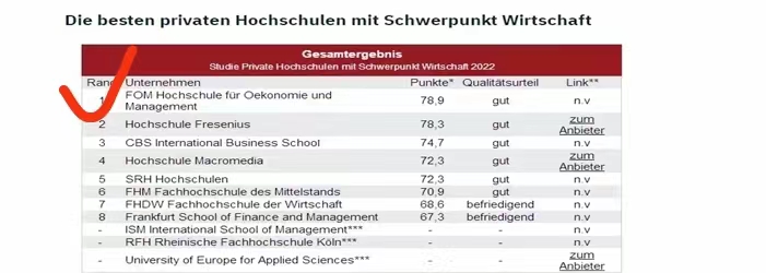 9、2022年7月7日,FOM大學在全德經濟類大學中排名第一。
