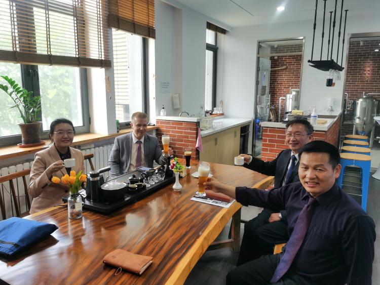 最后,校長一行參觀了人文社科學(xué)院教學(xué)實踐基地,參觀了啤酒釀造實驗室、葡萄酒品鑒室、清源劇場演藝廳等,品嘗了實驗室自釀的啤酒,在交談之中,亞考·哈利拉校長對我校建設(shè)發(fā)展和教學(xué)科研設(shè)施贊嘆不已。