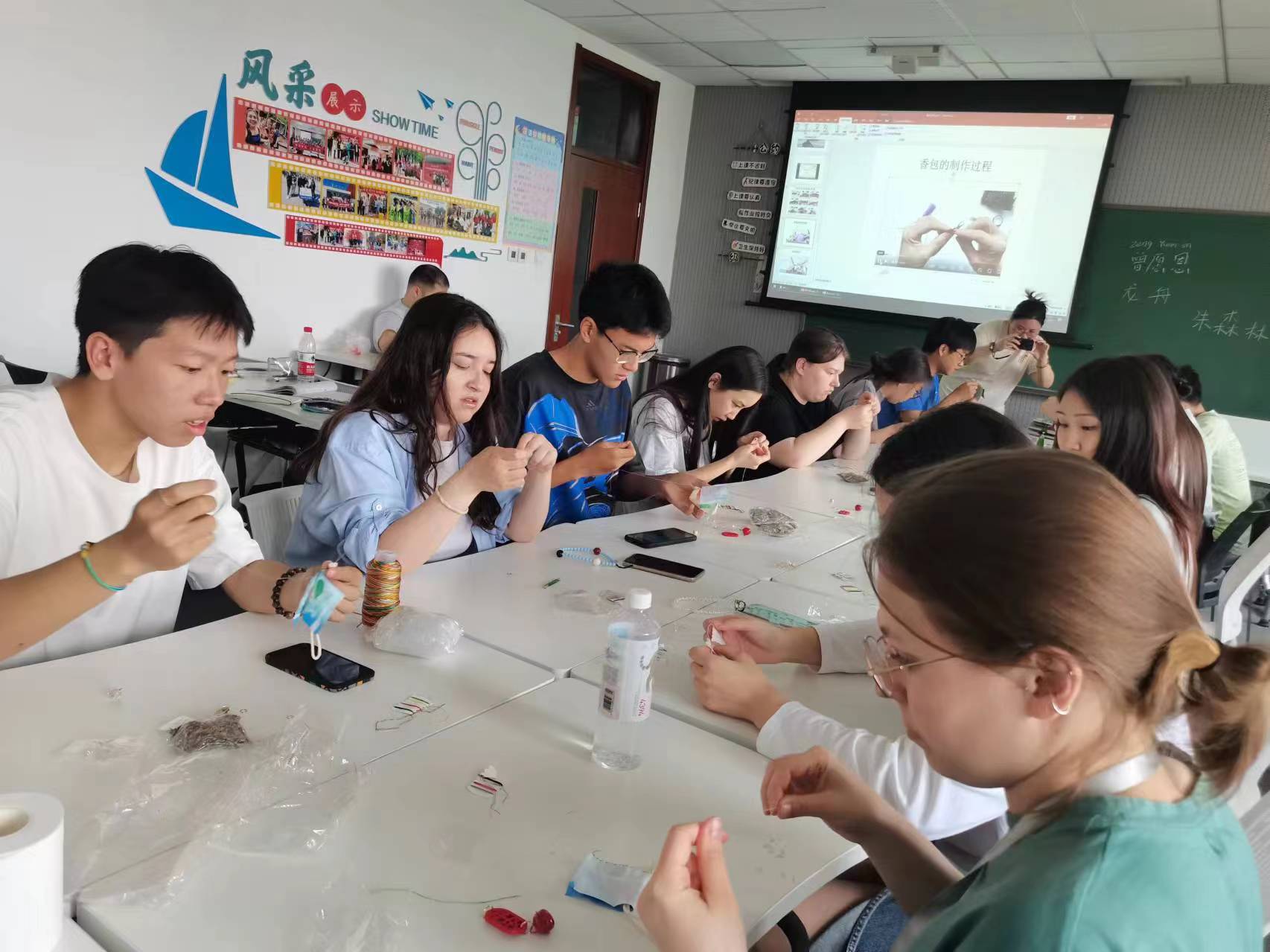 活動伊始漢語課教師為留學生們介紹了端午節的起源、文化背景和習俗,讓同學們了解端午節的由來,體會端午文化的意義。老師們為留學生們播放香包制作過程,發放了制作香囊的工具,帶領大家一起學習制作屬于自己的香囊,同學們熱火朝天并紛紛表示香囊的制作過程十分的新奇與特別。來自俄羅斯的留學生維卡表示,這是她第一次在中國過端午節,雖然她香囊做得不好,但是她很喜歡這種“中國味道”。香囊制作結束,中國學生分享家鄉端午節習俗和不同地區端午節文化差異,并耐心回答留學生的問題。