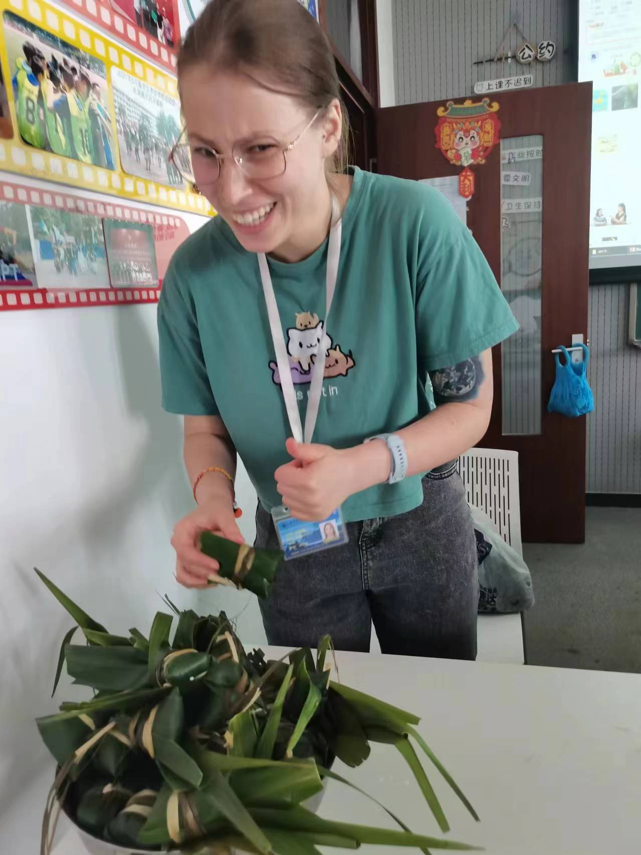 在老師們指導和幫助下,中外學生們通過“系五彩繩”、“包粽子”、“做香包”等活動深入體驗了悠久璀璨的中華節日文化。來自俄羅斯的留學生維卡表示,這是她第一次在中國過端午節,雖然她香囊做得不好,但是她很喜歡這種“中國味道”。