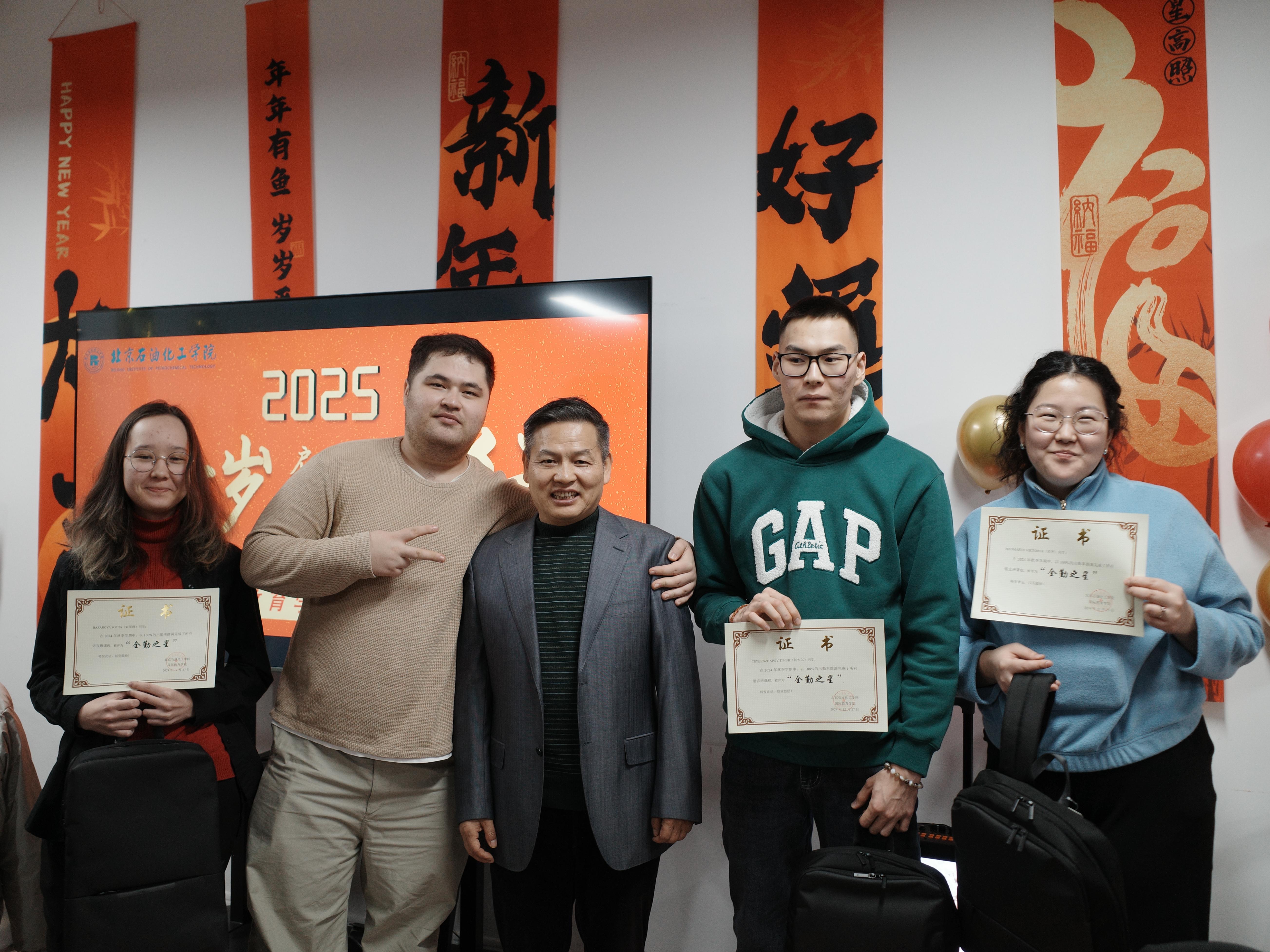 抽獎環(huán)節(jié)過后,聯(lián)歡會迎來了又一個溫馨時刻。學院特別對一學期漢語課百分百全勤的部分留學生進行了表彰,他們在過去一學期里無論何種情況,始終能堅持做到按時出勤,這份對學習的追求與熱情令人欽佩。黃建平副院長親自為他們頒發(fā)榮譽證書與獎品,同時呼吁全體學生向他們學習,在學業(yè)上持之以恒、砥礪奮進。