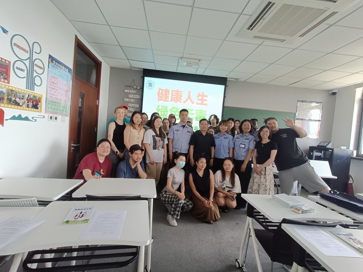 為構(gòu)建健康和諧的校園環(huán)境,引導(dǎo)來華留學(xué)生遵紀(jì)守法,增強(qiáng)毒品防范意識(shí),6月26日上午,國際教育學(xué)院聯(lián)合北京市大興公安出入境開展“健康人生 綠色無毒”禁毒普法宣傳教育活動(dòng)。北京市大興公安出入境警官、國際教育學(xué)院老師及來華留學(xué)生共20余人參加了第37個(gè)國際禁毒日宣傳活動(dòng)。