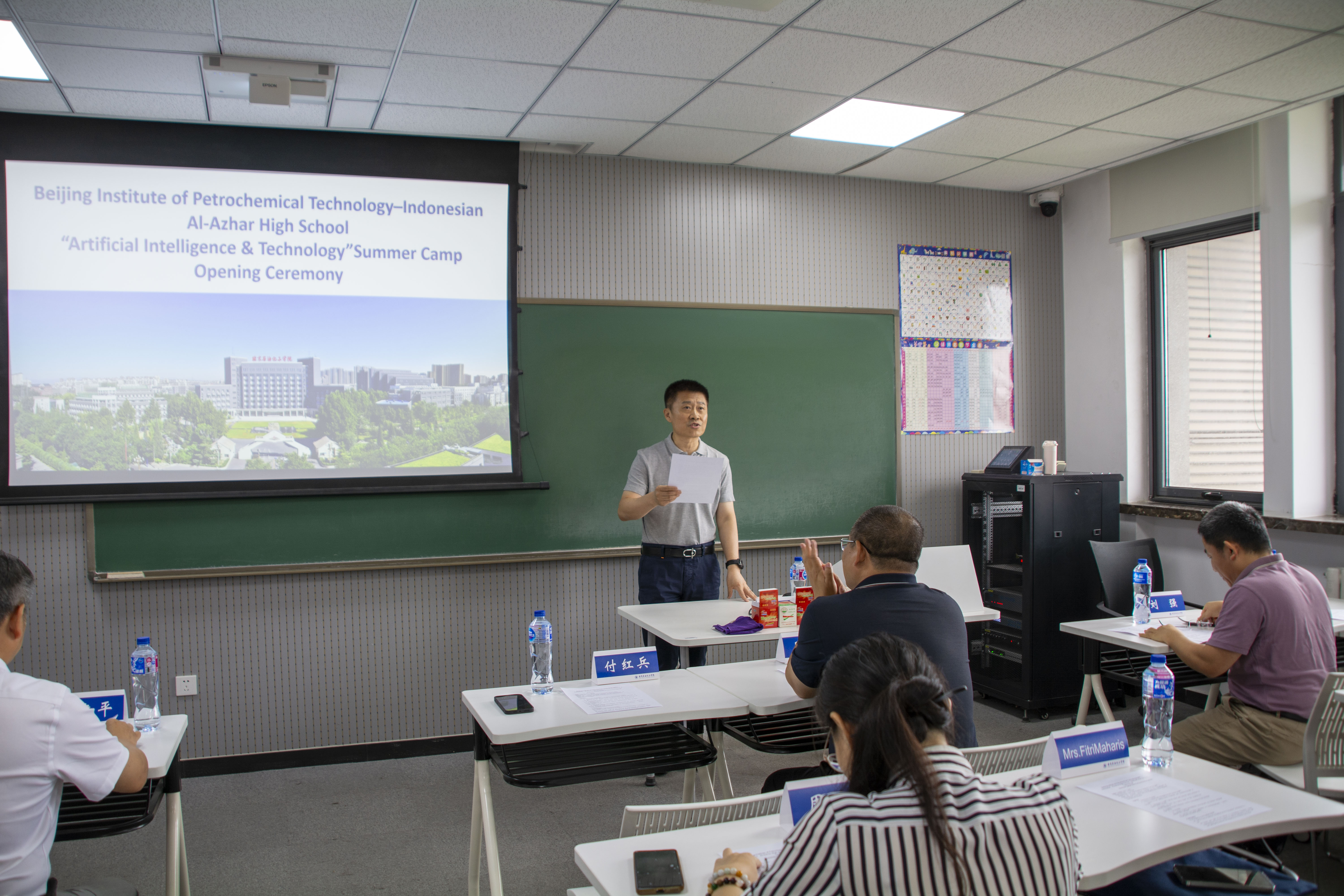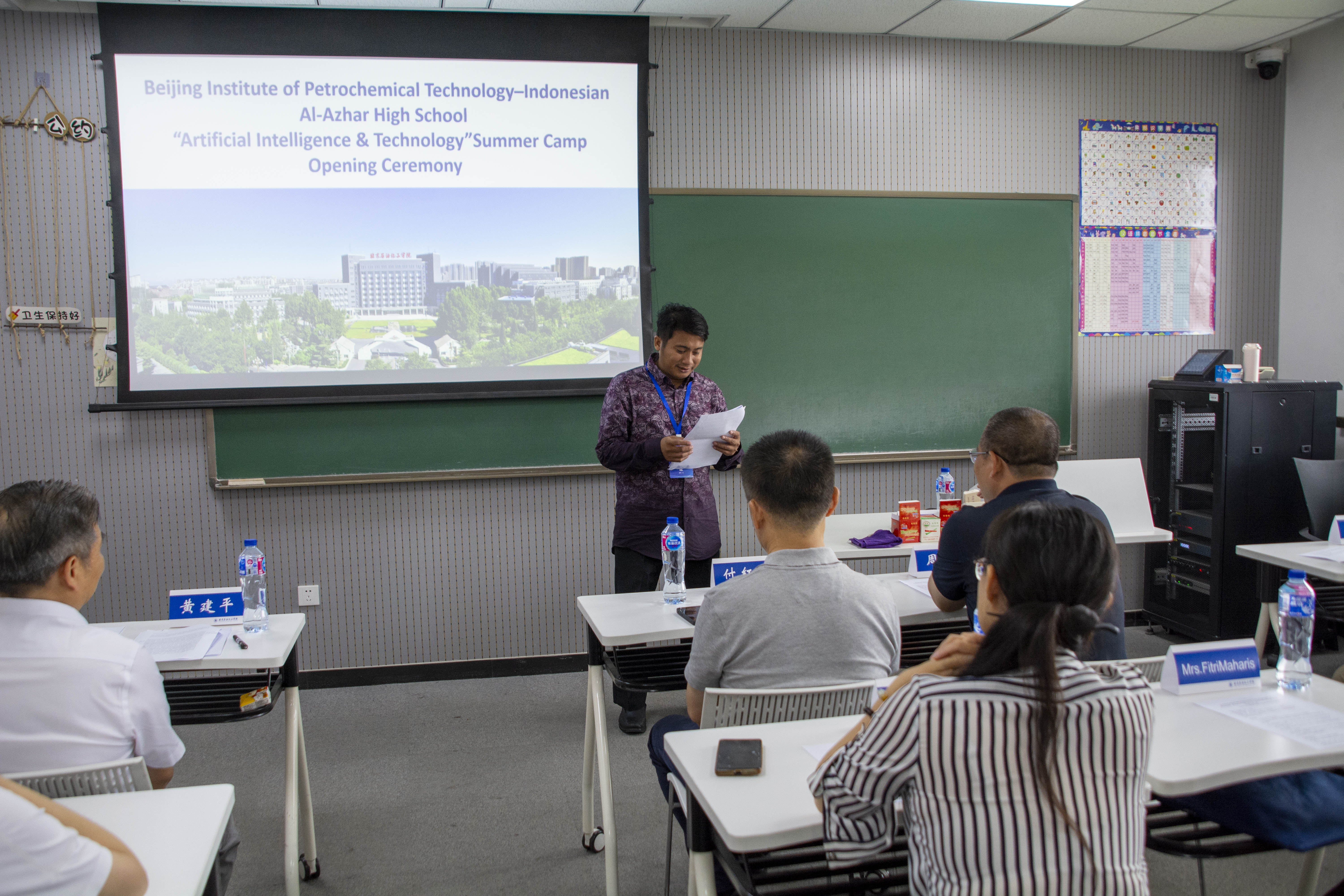 7月1日上午,北京石油化工學(xué)院-印尼阿拉扎高中“人工智能科技”夏令營(yíng)開營(yíng)儀式在清源校區(qū)主樓1810教室舉行。北京石油化工學(xué)院副院長(zhǎng)付紅兵、北京世華易網(wǎng)教育科技有限公司(CUCAS)董事長(zhǎng)兼總經(jīng)理周東、印尼阿拉扎高中教師 Fahrurrazi以及印尼阿拉扎高中的師生、CUCAS公司代表、學(xué)校人工智能學(xué)院和國際教育學(xué)院教師出席開營(yíng)儀式,開營(yíng)儀式由國際合作與交流處處長(zhǎng)兼國際教育學(xué)院院長(zhǎng)黃建平主持。