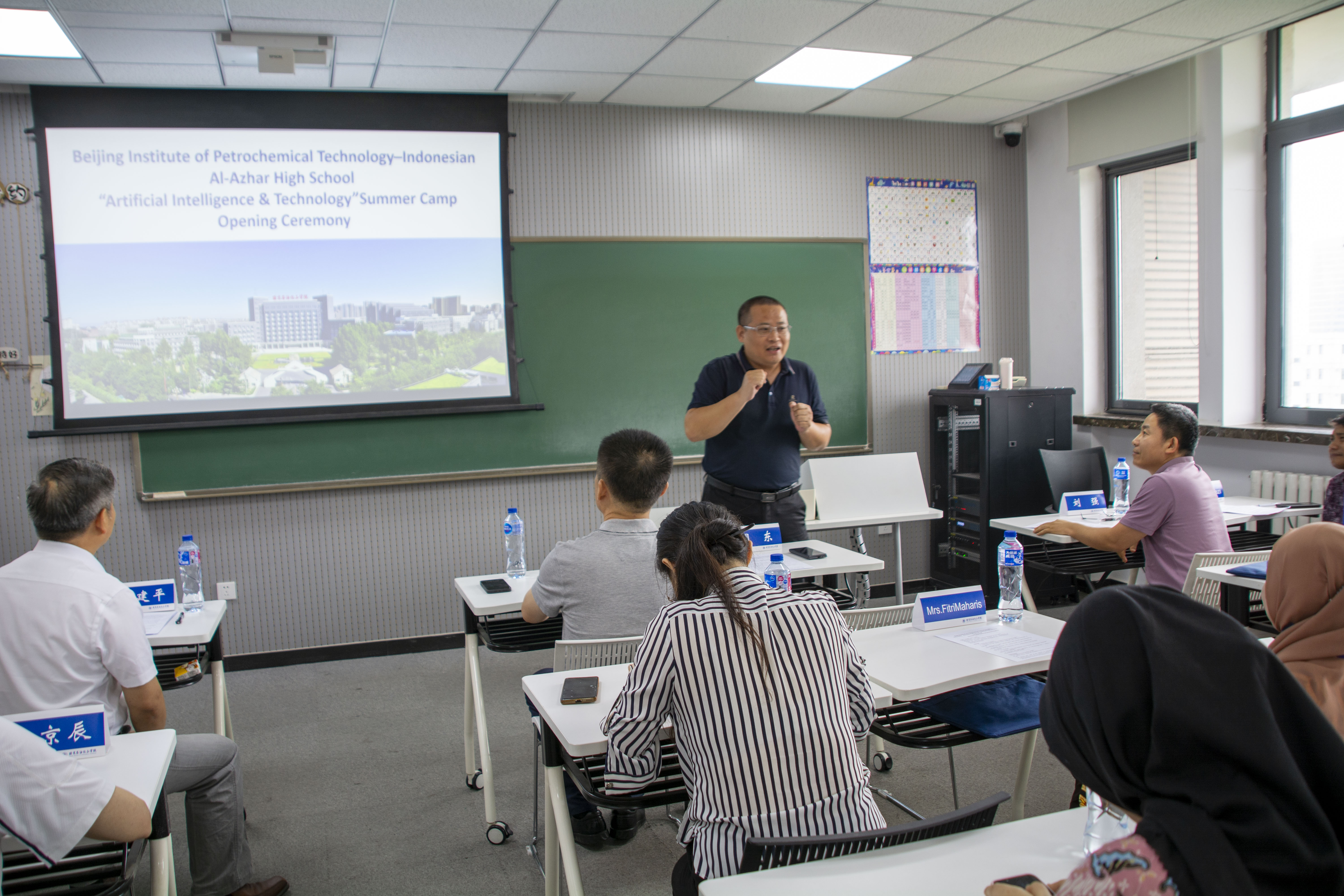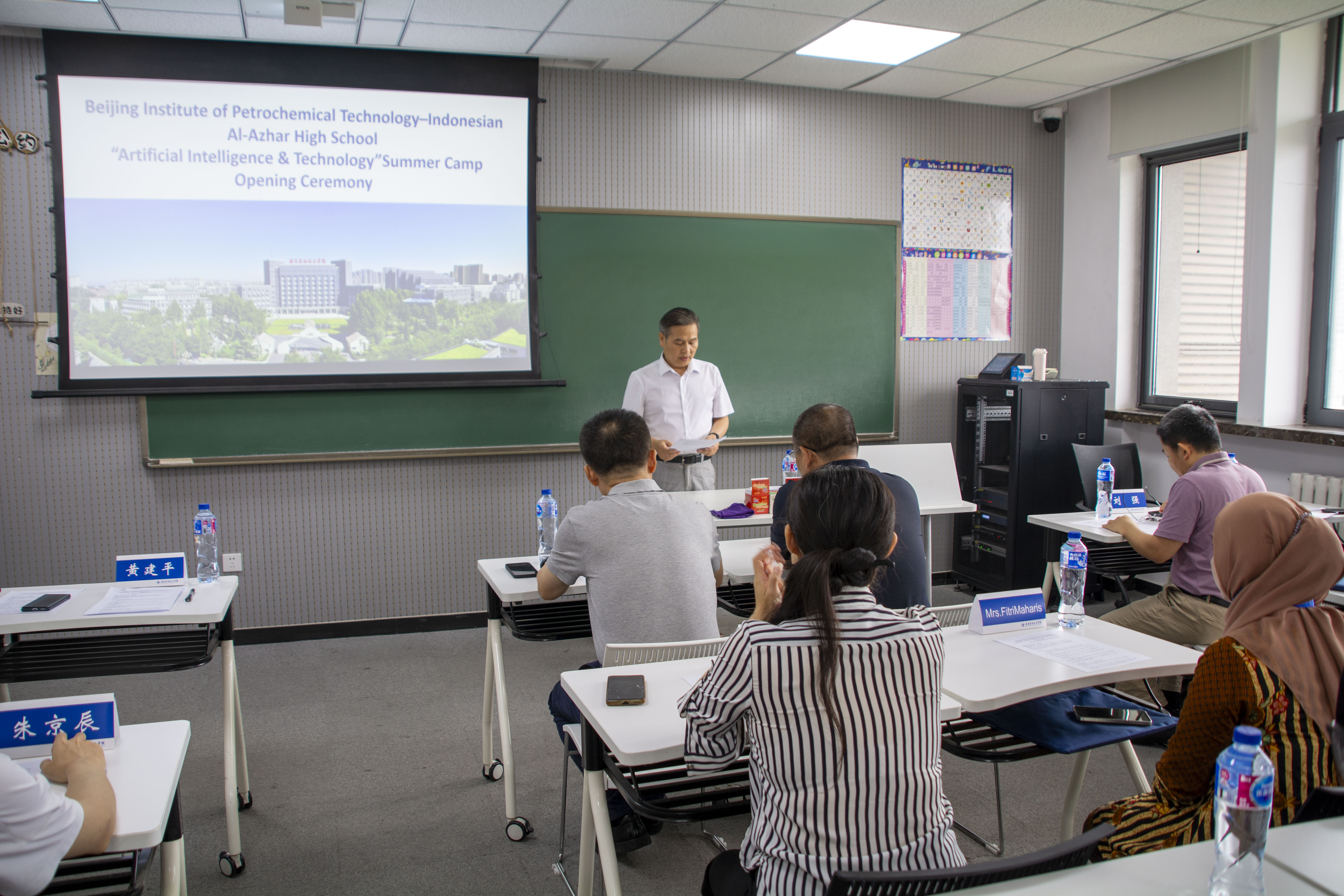 國際教育學(xué)院院長(zhǎng)黃建平通過學(xué)校宣傳片生動(dòng)展示了北京石油化工學(xué)院發(fā)展歷程和辦學(xué)特色,介紹了本次夏令營(yíng)豐富充實(shí)的日程安排,涵蓋人工智能、中國語言文字、傳統(tǒng)文化體驗(yàn)與北京名勝游覽等環(huán)節(jié)。