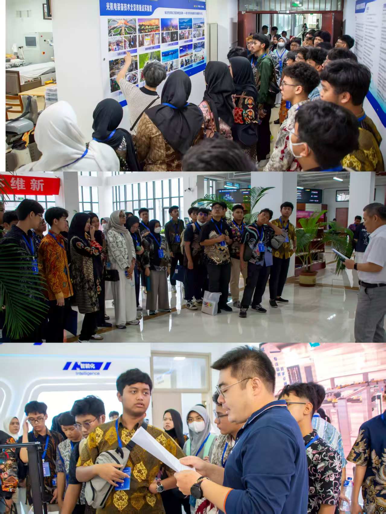 講座結(jié)束后,在工作人員的帶領(lǐng)下,阿拉扎高中參團(tuán)師生開啟了校園探索之旅。他們先后參觀了光機(jī)電重點(diǎn)實(shí)驗(yàn)室、圖書館以及創(chuàng)源工程實(shí)訓(xùn)中心,親身感受了北京石油化工學(xué)院濃厚的學(xué)術(shù)氛圍與創(chuàng)新活力。