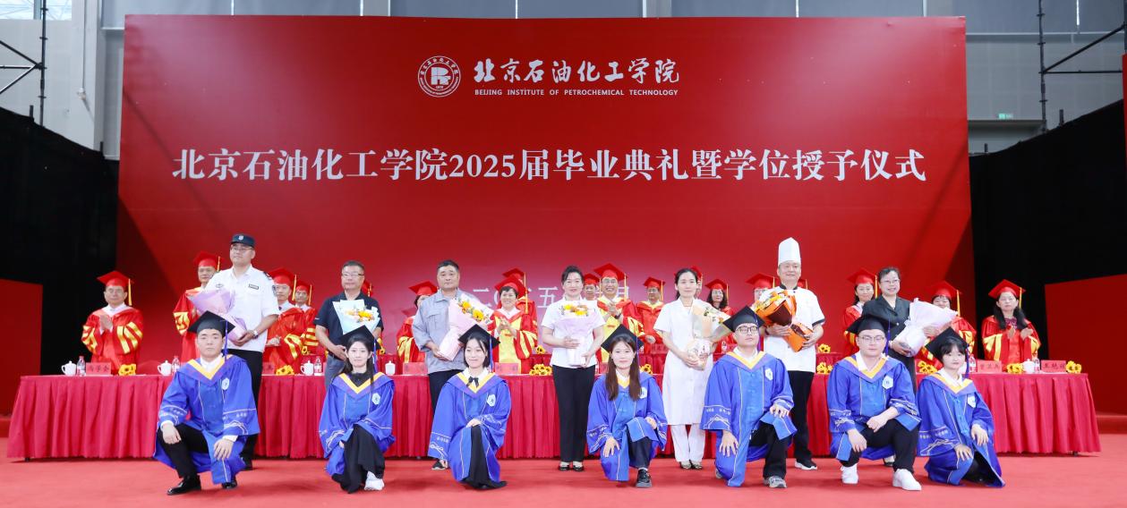 北京石油化工學院黨委書記劉穎,黨委副書記、院長羅學科,黨委副書記雷京,黨委副書記馮學會,黨委常委、副院長張泉利,黨委常委、副院長陳家慶,黨委常委、副院長靳海波,副院長付紅兵,黨委常委、紀委書記袁慧鳳,副校級干部孫大慶,黨委常委、宣傳部部長曾衛兵,校友代表,各教學院、相關職能部門負責人,教職工代表,2025屆畢業生及家長代表參加典禮。典禮由黨委副書記馮學會主持。