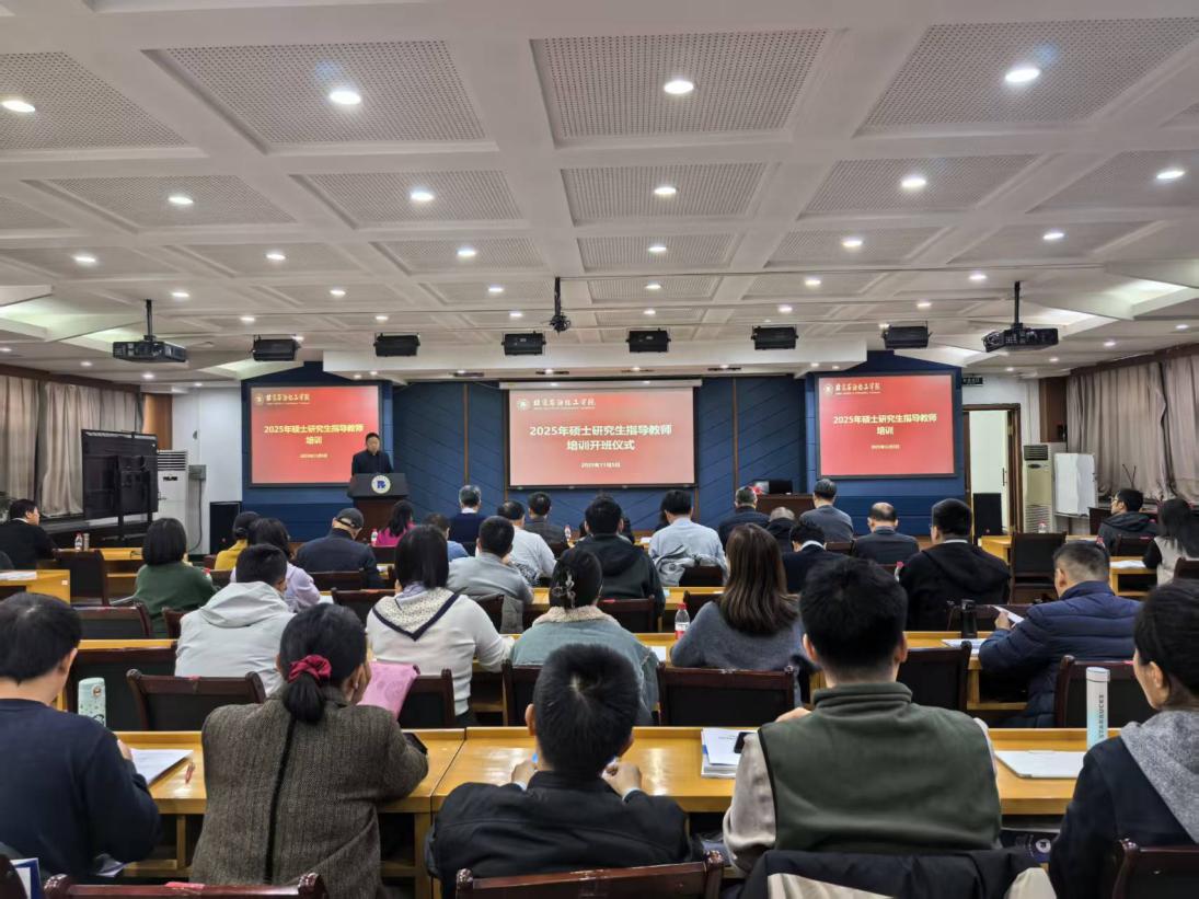 在全校上下深入學(xué)習(xí)二十屆四中全會精神、全面貫徹習(xí)近平總書記關(guān)于教育的重要論述和全國教育大會精神之際,學(xué)校于11月5日-6日舉辦2025年碩士研究生指導(dǎo)教師培訓(xùn),強化導(dǎo)師立德樹人根本任務(wù),提升研究生培養(yǎng)核心質(zhì)量。2025年新聘校內(nèi)碩士研究生指導(dǎo)教師以及各學(xué)院分管研究生副院長、學(xué)科帶頭人、學(xué)科方向帶頭人、研秘、學(xué)科秘書、研究生處全體教師參加了培訓(xùn)活動。本次培訓(xùn)采取專題報告、政策解讀以及線上培訓(xùn)相結(jié)合的方式進(jìn)行。培訓(xùn)會由研究生工作部(處)部(處)長、學(xué)科建設(shè)辦公室主任陳飛主持。