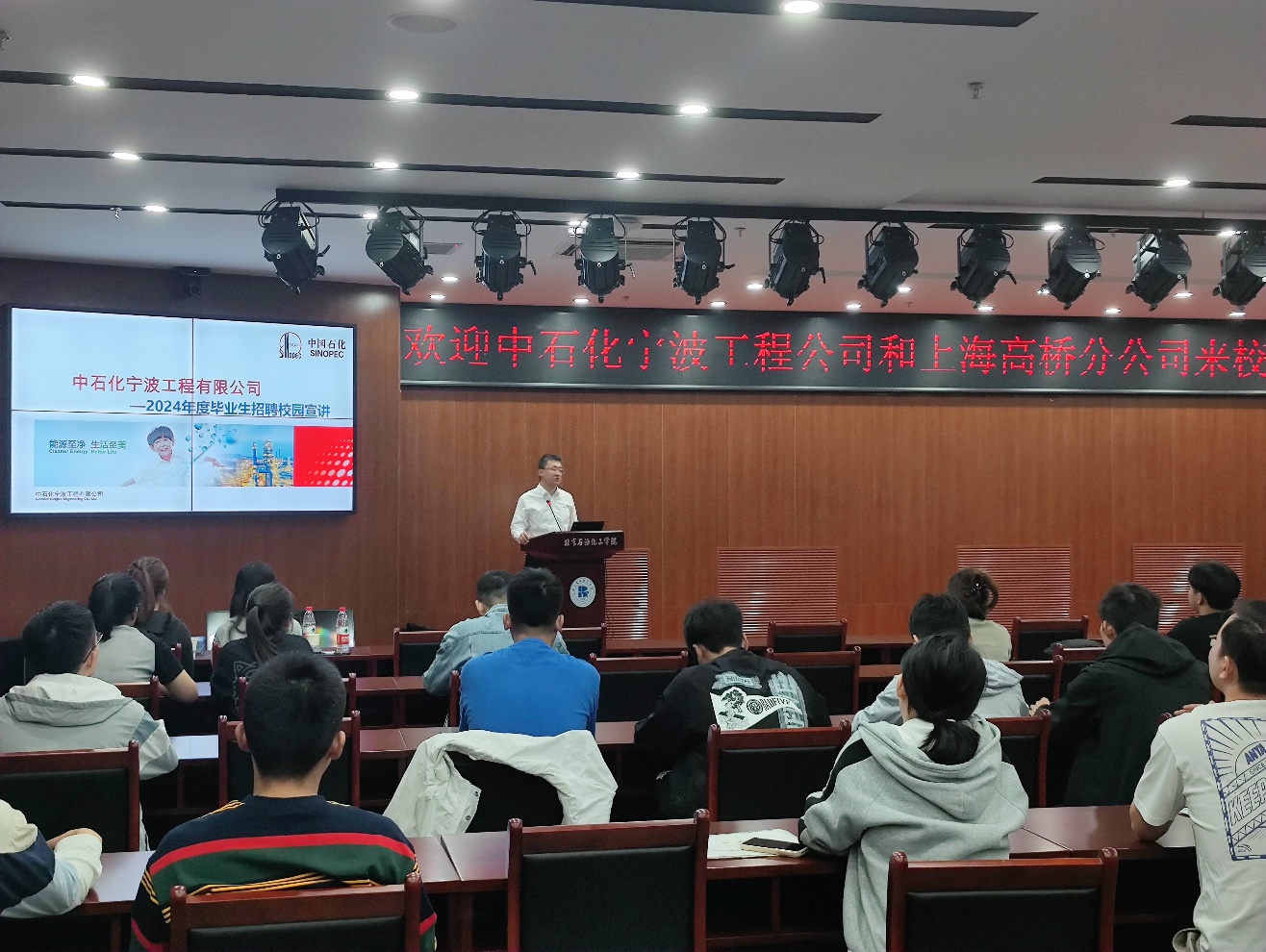 2023年10月11日至19日,中國石油化工集團有限公司下屬燕山分公司、上海高橋分公司、茂名分公司、北海分公司、海南煉油化工有限公司、催化劑有限公司、廣州分公司、潤滑油有限公司北京研究院、中科(廣東)煉化公司、中石化上海工程有限公司、中石化寧波工程有限公司、中石化經緯有限公司等十二家用人單位的校園專場宣講會在我校學生綜合服務樓五層德音報告廳舉行,2024屆本科生、研究生共300余人參加。