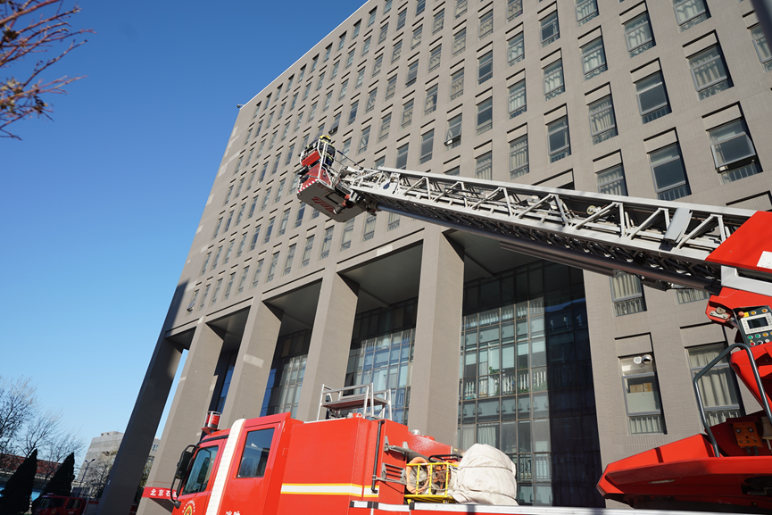 接到火情報警后,學校微型消防站消防員迅速響應,在趕往現場的同時上報領導,現場指揮部指揮疏散救援工作。大興區黃村消防救援支隊接到119調度指揮中心命令后,迅速奔赴現場,進入樓內火情核心區搜救受傷被困人員,水罐消防車在建筑樓外壓制火情,云梯消防車對被困高層的同學實施高空救援。經消防官兵奮力撲救,火情得到控制。