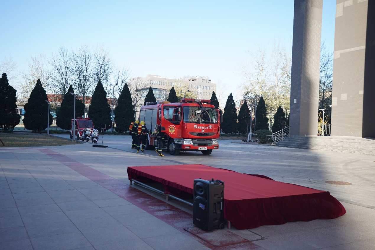 黨委副書記馮學會對演練活動給予高度肯定,他指出,做好消防安全工作是促進學校健康穩定發展的關鍵,是保障師生員工生命財產安全的重要環節,是推進建設更高水平的平安校園的重要內容,關系學校建設發展長遠,關系師生切身利益。他希望,全體師生進一步提高認識,居安思危,從我做起、從小事做起、從身邊做起,共同筑牢校園消防安全防線。他代表學校向各參演單位表示感謝并向大興區消防救援支隊贈送錦旗。