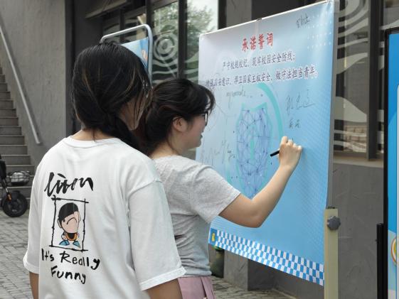 在活動現(xiàn)場,參與者共同宣讀了“嚴守校規(guī)校紀,筑牢校園安全防線;增強國安意識,捍衛(wèi)國家主權(quán)安全,做守法擔(dān)當青年”的錚錚誓言,并在簽名墻上簽名,以實際行動表達守護校園安全的堅定決心。