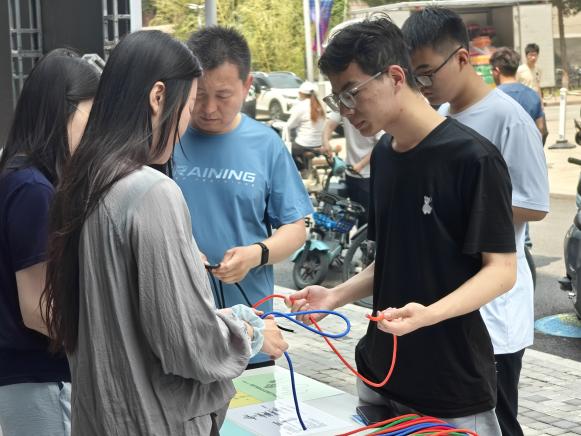 本次活動采用趣味闖關(guān)形式,巧妙融合用電、火災(zāi)、交通、應(yīng)急救援等多領(lǐng)域安全知識,精心設(shè)計了四大特色游戲環(huán)節(jié):在“安全知識大轉(zhuǎn)盤”中,參與者通過轉(zhuǎn)動轉(zhuǎn)盤抽取題目,挑戰(zhàn)安全知識儲備;“安全標識消消樂”以互動游戲形式,幫助師生強化安全標識認知;“安全隱患大搜索”模擬真實場景,鍛煉隱患辨識能力;“安全繩結(jié)編一編"”通過實踐操作,傳授實用應(yīng)急救援繩結(jié)技巧。完成各關(guān)卡挑戰(zhàn)即可收集印章,憑累積印章數(shù)量兌換小禮品。新穎的活動形式吸引了眾多師生參與,現(xiàn)場氣氛熱烈。