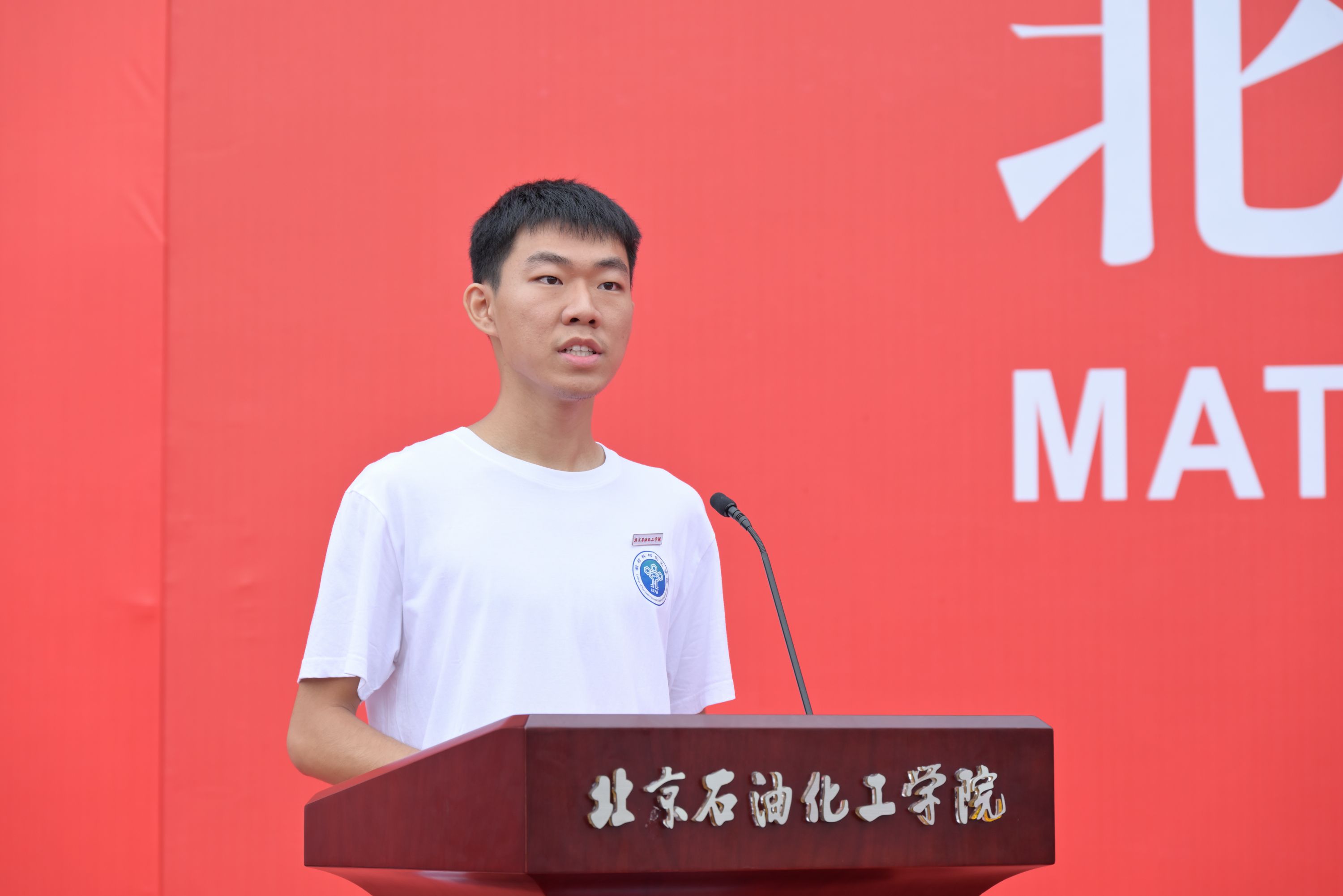 校學生會輪值主席、人文社科學院閆慶坤作為在校生代表發言。他寄語新同學要踔厲奮發,用青春譜寫時代篇章;認真學習,用青春擘畫人生旅途;知行合一,讓青春綻放實踐光彩。