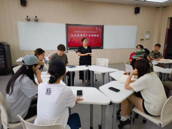 周先卓老師主持本場活動,書籍是進(jìn)步之階,青年應(yīng)志存高遠(yuǎn)、腳踏實地,銘記囑托,善用碎片時間廣讀好書,擔(dān)當(dāng)民族復(fù)興之任。在誦讀環(huán)節(jié)中,石雨晨老師帶領(lǐng)同學(xué)們深入剖析朱德同志給妻子的三封家書,大家同讀紅色經(jīng)典,體會烽火歲月,感受美好生活的來之不易,小組研討暢所欲言,分享交流體會,暢談閱讀感悟。