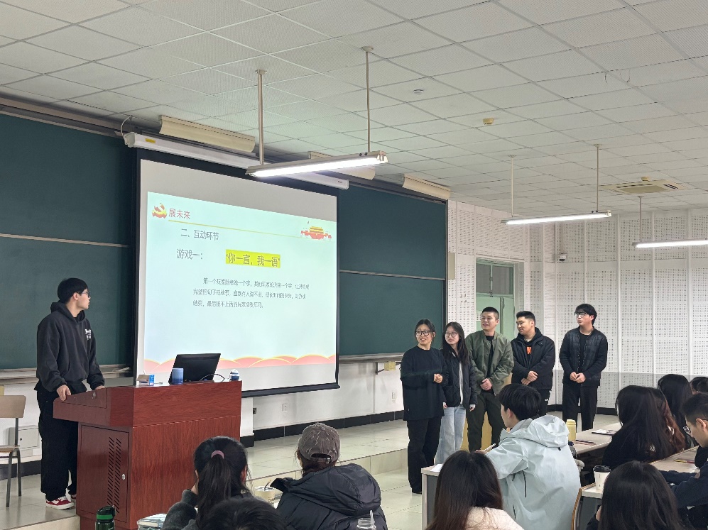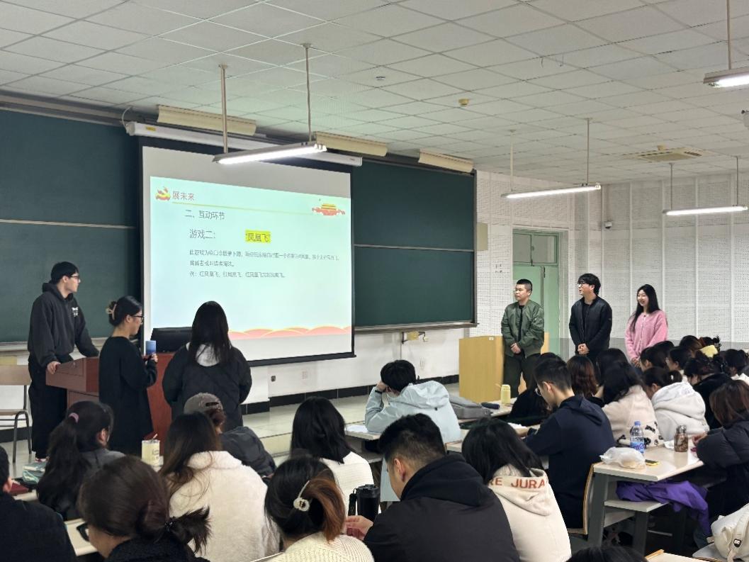 接下來李子軒同學組織大家進行游戲“你一言,我一語”,游戲規則為玩家輪流接字組成句子或故事,接不上者受罰。第一個游戲在大家的歡笑聲中結束,迎來了第二個小游戲“鳳凰飛”——繞口令版蘿卜蹲。游戲規則需要玩家取名為X鳳凰,失誤者淘汰。小游戲的開展,不僅鍛煉了同學們的反應力、表達力和想象力,還進一步加深了同學們之間的互動與了解。