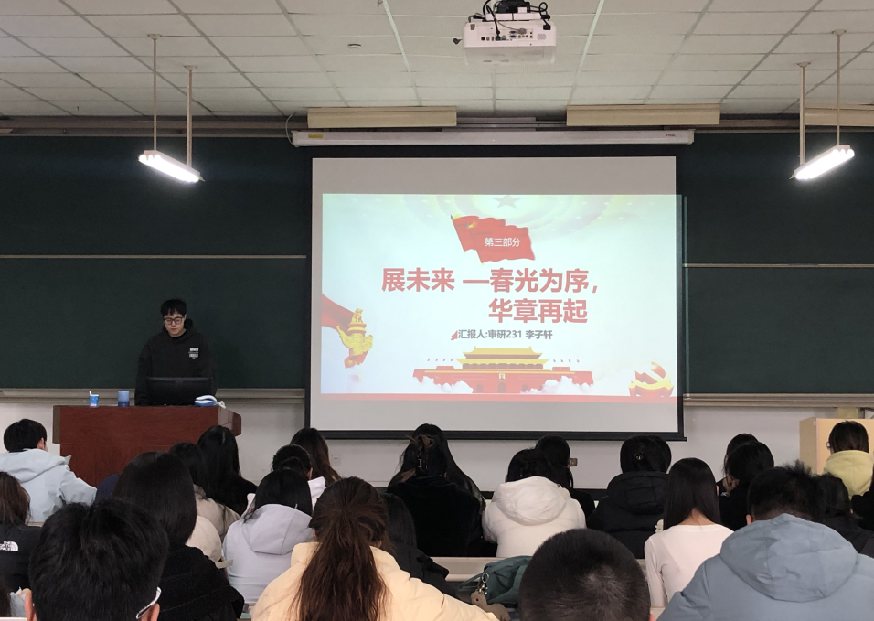 2025年3月14日上午,由經濟管理學院學生第七、第八黨支部(研究生黨支部)主辦的“學理論,練本領,展未來”二十四期“工研論壇”如期在康411順利舉行。此次論壇由審計專業23級宋紫玉、賈琪和李子軒同學作為主講人,經濟管理學院學生第七黨支部書記張麗、第八黨支部書記杜鎮偉出席此次論壇,工商管理專業及審計專業全體研究生同學積極參與其中。