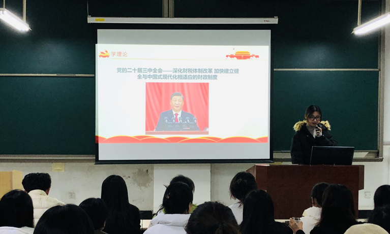 本期“工研論壇”主要圍繞“學理論、練本領、展未來”三大主題展開。在“學理論”環節,由梁曦同學作為領學人,深入解讀了黨的二十屆三中全會關于深化財稅體制改革的決策部署,詳細介紹了健全預算制度、優化稅制結構以及完善央地財政關系等關鍵改革措施,并強調了深化財稅體制改革對于推動高質量發展、推進國家治理體系和治理能力現代化的重要意義。通過視頻資料和現場問答環節,全體同學對財稅體制改革的重要性和緊迫性有了更加深刻的認識。