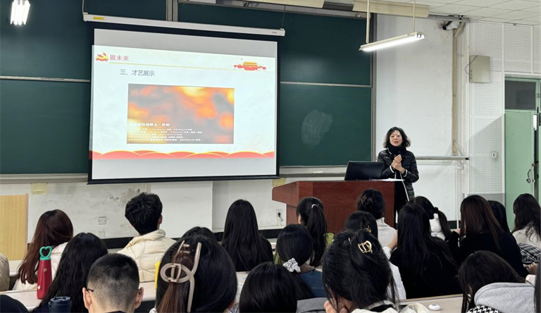 “展未來”環節中,賈琪同學通過分享生動的故事,以及航天員鄧清明的勵志經歷,鼓勵同學們在面對困難和挑戰時要保持堅韌不拔的精神,她引用了鄧清明的一句話:“絕不容忍在任務來臨時,我還沒有準備好。”這句話深深觸動了在場的每一位同學。