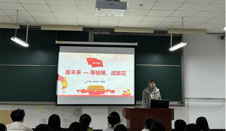 2024年11月22日上午,由經濟管理學院學生第七黨支部(研究生黨支部)主辦的“學理論,練本領,展未來”第二十二期“工研論壇”如期在康203順利舉行。此次論壇由審計專業23級梁曦同學、仵上同學和賈琪同學作為主講人,學生第七黨支部書記張麗老師出席此次論壇,工商管理專業及審計專業全體研究生同學積極參與其中。
