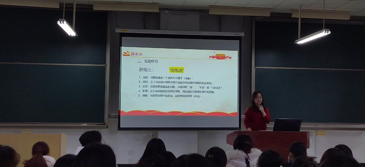 接下來,在論壇的互動環節,同學們積極參與了各類有趣的游戲。在“禁詞動作唱歌”游戲中,大家分組PK,盡情展現了自己的才藝與機智;在“蛇年猜猜樂”游戲中,根據大屏幕給定的emoji表情來猜答案,考驗了大家的思維和反應能力;而在“海龜湯”游戲中,出題者巧妙設置謎題,臺下同學通過提問與推理,一步步揭開真相,讓大家在緊張刺激的氛圍中感受到了團隊合作的智慧與力量。