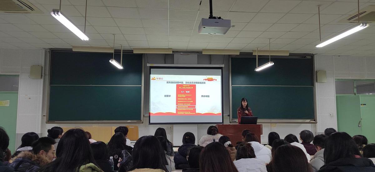 第一個環節是“學理論”,在趙穎同學的帶領下,共同學習了中國共產黨第二十屆中央委員會第三次全體會議中關于深生態文明體制改革的重要內容。趙穎強調了會議明確指出的建設美麗中國,深化生態文明體制改革的宏偉目標,并提出了一系列具體要求和舉措。實施分區域、差異化、精準管控的生態環境管理制度,健全生態環境監測和評價制度,以及完善生態文明基礎體制、健全生態環境治理體系、健全綠色低碳發展機制等方面的要求,為未來的生態文明建設指明了方向。