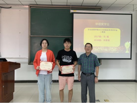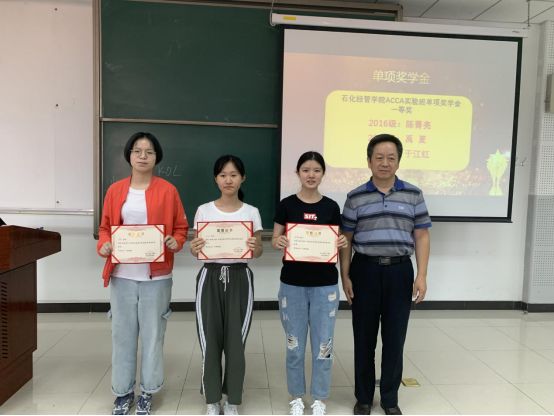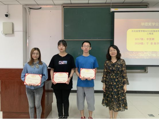 隨后,進入頒獎環節。根據石化經管學院《國際會計師(ACCA)實驗班管理制度匯編》中關于“國際會計師(ACCA)實驗班專項獎學金制度”的規定,結合2018-2019學年16級、17級、18級三個年級學生對本學年內ACCA課程全球考試完成情況,進行綜合篩選、評定,對獲得綜合獎學金、單項獎學金的學生頒發證書和獎金。
