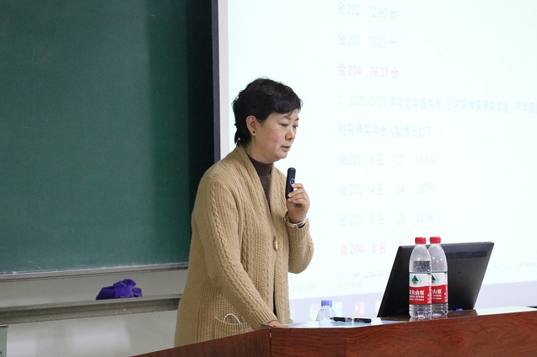 會上,首先由ACCA實驗班班主任李勝梅老師匯報ACCA實驗班當前情況,涉及會204班、會193班和會184班三個班級,主要從累計平均學分績、四級通過情況、獲獎情況、班級活動以及ACCA通過情況等四個方面進行說明。