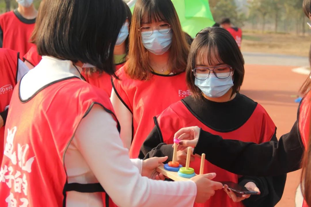 第二場游戲是大家解開漢諾塔。在這個源于古老傳說的益智游戲上,大家的溝通能力和策劃能力,合作能力就顯得異常重要了。每一組同學都各顯神通,用了不同的方式來達到目的。整個過程中,組員之間的溝通協調促進了同學們之間的了解,讓大家不僅在游戲中快樂,更在游戲中發現自己的伙伴,認識自己的伙伴。