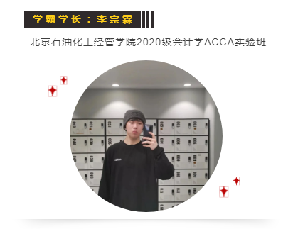 李宗霖,是我們會204班的學生,印象中他是一個非常沉穩的大男孩,喜歡籃球、手游、健身,在學習上是屬于厚積薄發的類型,尤其是在本學期的ACCA成績上,更是一鳴驚人,成功跨入備戰季考的階段!