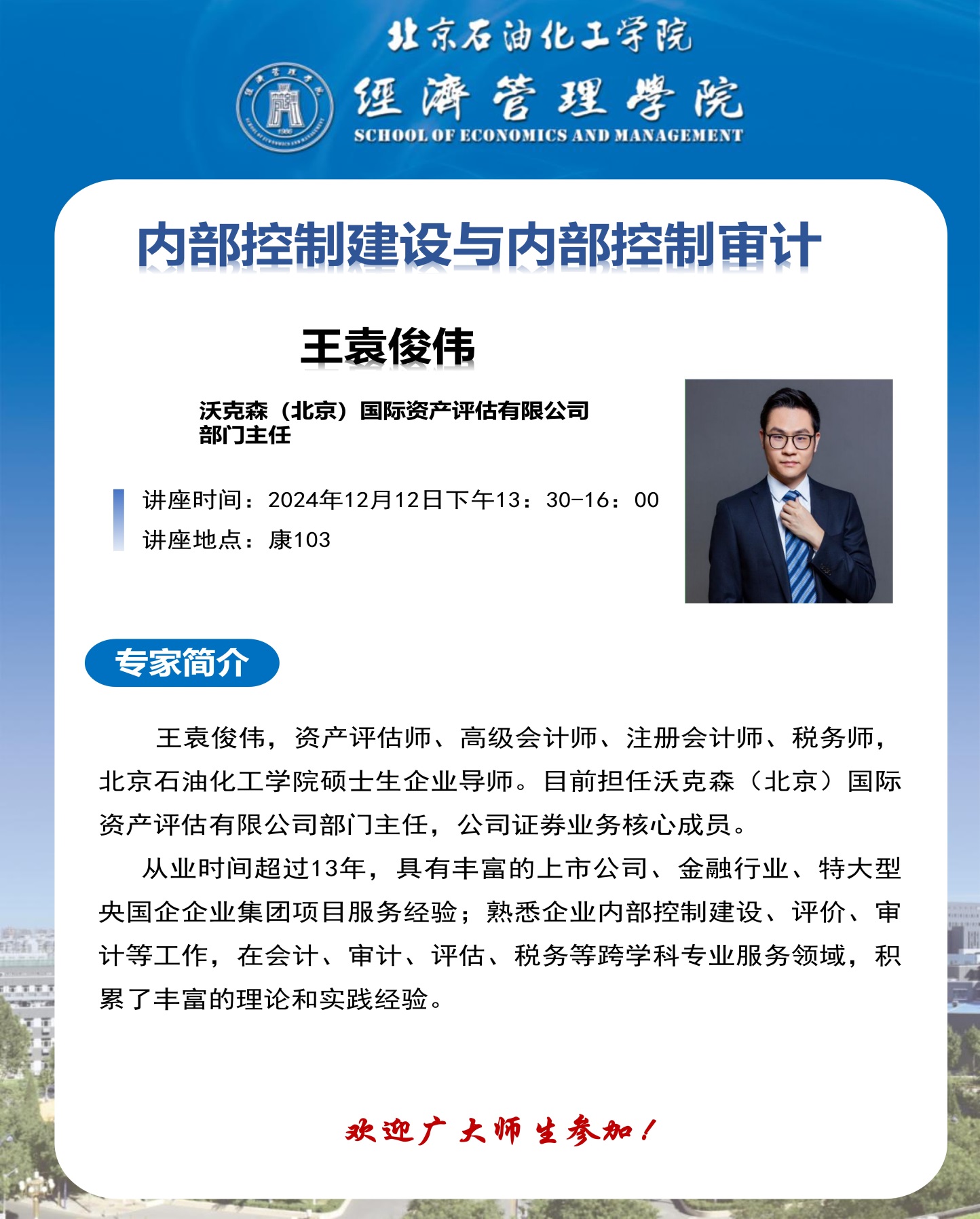 經濟管理學院學術講座通知:內部控制建設與內部控制審計