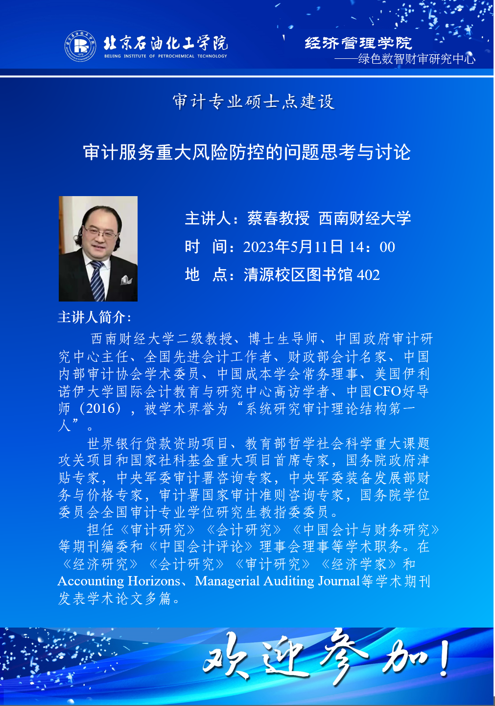 學(xué)術(shù)講座通知:審計(jì)服務(wù)重大風(fēng)險(xiǎn)防控的問題思考與討論
