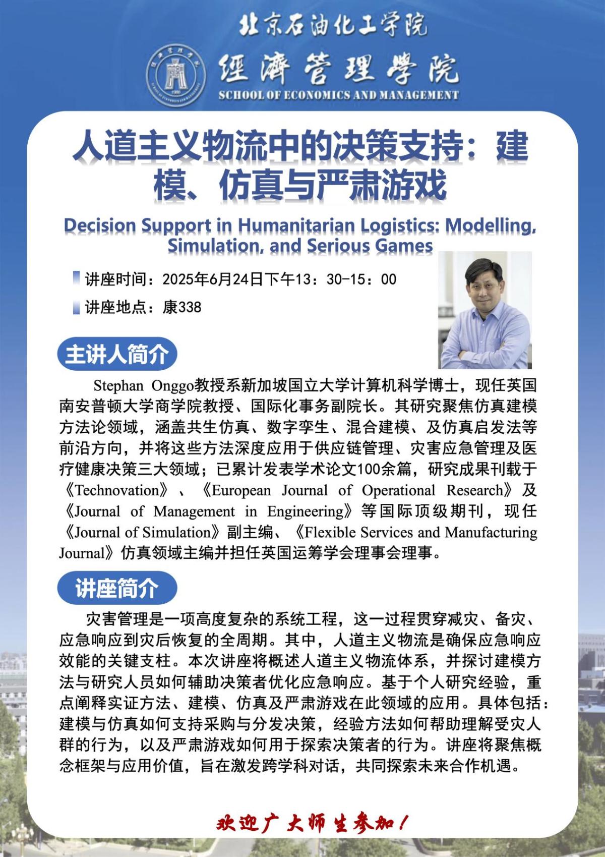 講座通知:人道主義物流中的決策支持:建模、仿真與嚴肅游戲