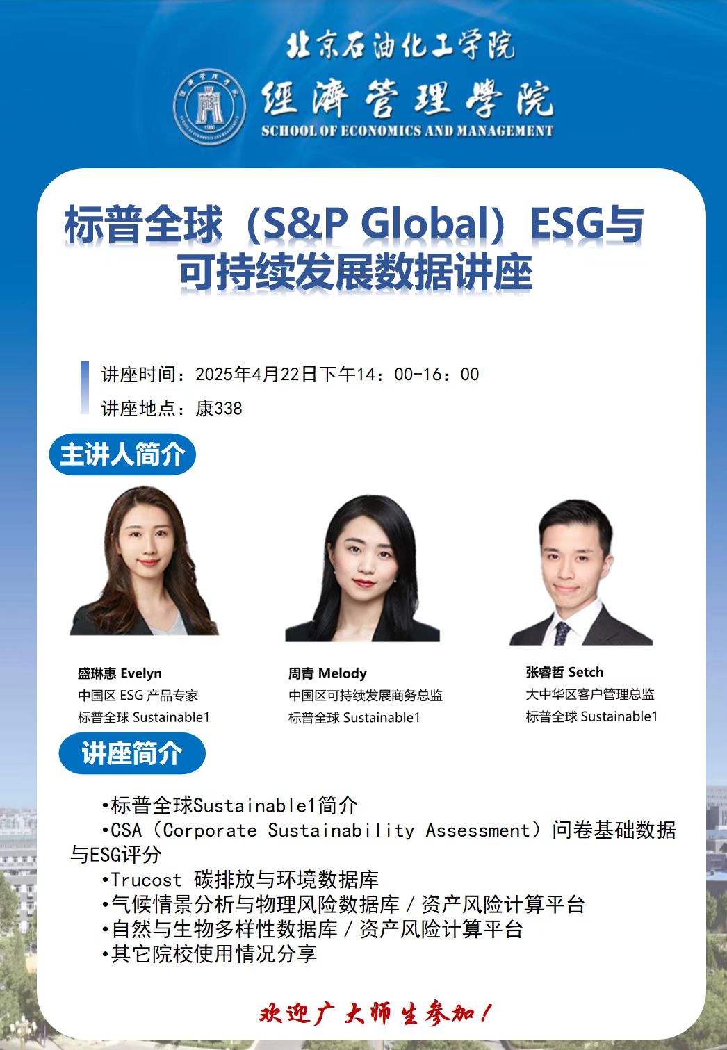 講座通知:標(biāo)普全球ESG與可持續(xù)發(fā)展數(shù)據(jù)講座