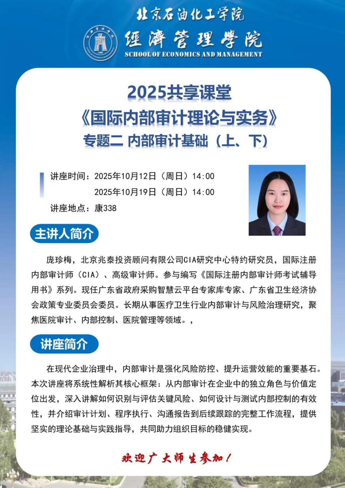 講座通知:2025共享課堂:《國際內(nèi)部審計理論與實務》專題二:內(nèi)部審計基礎(chǔ)(上、下.)