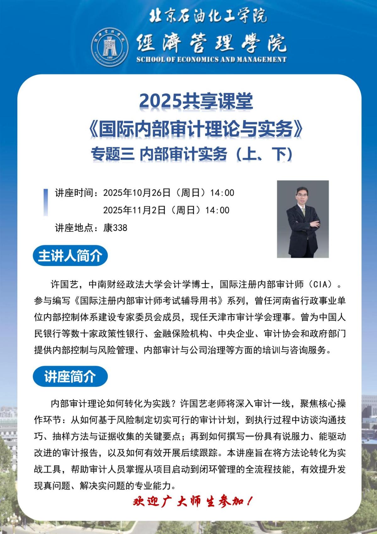 講座通知:2025共享課堂 《國際內部審計實務》專題三 內部審計實務(上、下)