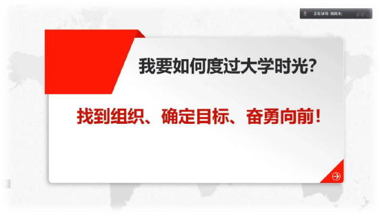其次,黨委副書記劉踐豐針對“我要如何度過大學時光?找到組織、確定目標、奮勇向前!”等一系列問題,引導學生正確認識到個人與黨、個人與國家的緊密聯系。鼓勵新生在大學生活中找到組織、確定目標、奮勇向前!他強調:“行動是最好的入黨申請書,心中有信仰,腳下有力量。”明確了青年人終將要成為新時代中國建設的中流砥柱。同時,他指出:初級黨課的目的是為了堅定信仰,只有信仰強烈才能蛻變為忠誠的實踐者。遞交入黨申請書之前嚴肅對待,端正入黨使命感與責任感,鄭重地選擇。
