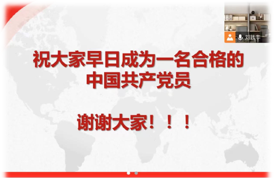 最后,黨委副書記劉踐豐詳細介紹了入黨流程,從遞交入黨申請書到如何成為一名中共黨員進行了講解,介紹了學院的黨支部設置情況,為學生解答了入黨流程方面的疑問,并要求不僅從形式上,更要從思想上,從實際行動上正確對待入黨。組織入黨一生一次,思想入黨一生一世。