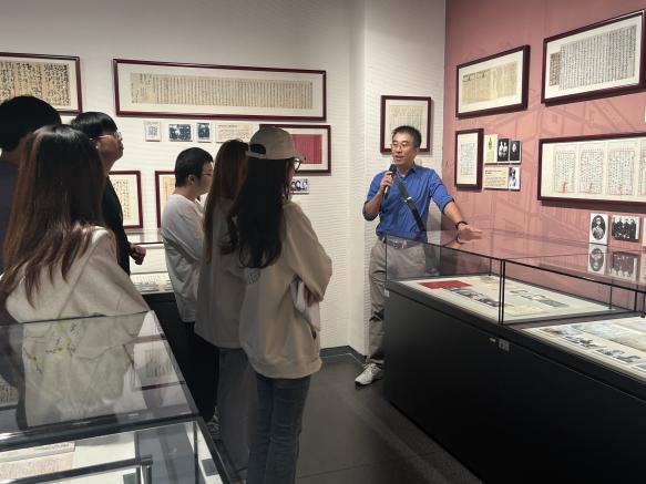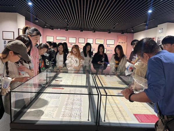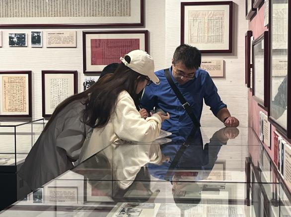 在講解員的介紹下,一幅幅泛黃的家書手稿映入眼簾,它們靜靜地躺在展柜中,卻仿佛在低語,講述著過去的故事。從烽火連天的戰爭年代到和平建設的崢嶸歲月,一封封家書承載著親人間深深的思念與牽掛,也見證了中華民族由苦難走向輝煌的壯麗歷程。各位黨員、學生代表仔細觀摩展出的各個時期的家書、手稿等珍貴資料,了解一封封家書背后的歷史故事,切身感受到中國共產黨人和革命志士熠熠生輝的信仰之光,感悟到了先輩們的革命精神和家國情懷。