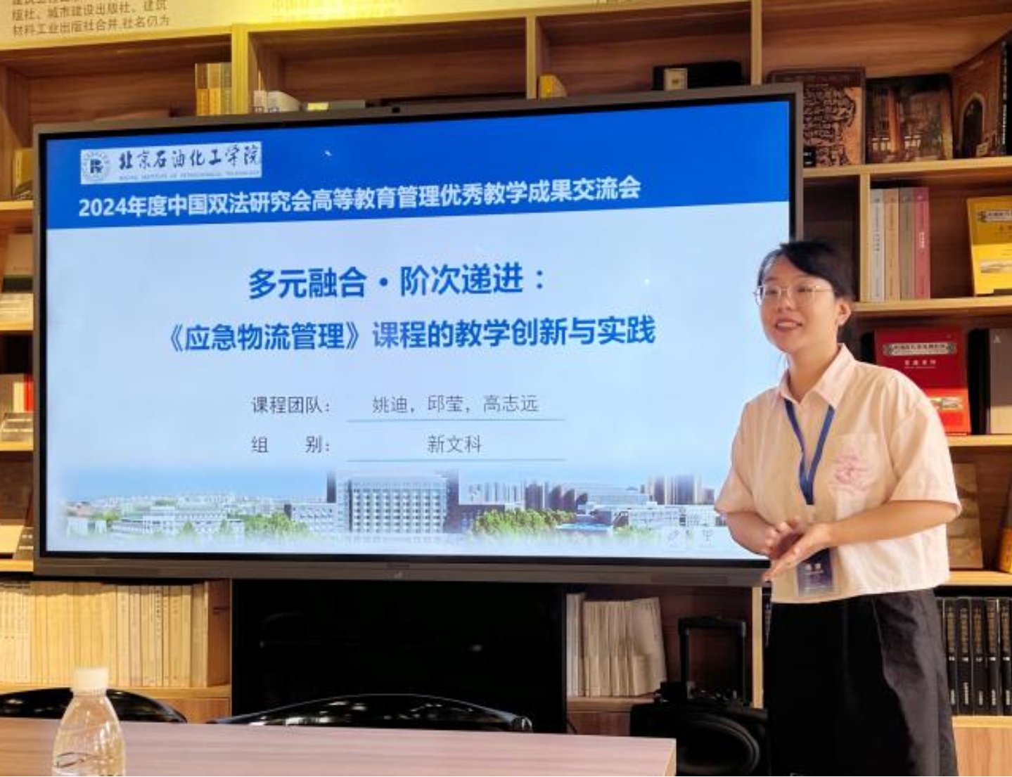 在“優秀教學成果交流會”上,姚迪老師做了《多元融合·階次遞進:應急物流管理課程的教學創新與實踐》的課程建設成果匯報,就課程“痛點”分析、創新思路與舉措、創新成效與成果等內容,與哈爾濱工業大學、復旦大學、成都理工大學、南京信息工程大學等課程團隊教師進行了深入交流與探討。學習了知名高校的教學創新實踐策略與方法,為進一步優化課程建設提供了良好思路,并榮獲優秀教學成果一等獎。