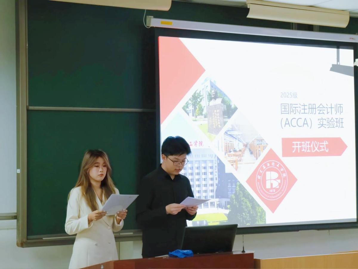 2025年9月25日,北京石油化工學院經濟管理學院在康207舉行2025級ACCA實驗班開班儀式。出席此次儀式的有:ACCA教育及學員發展主任任紫妍,東亞國際教育創始人兼CEO張紅霞,經濟管理學院黨委書記李峰,黨委副書記、院長李海萍,會計系主任葉江虹、ACCA項目負責人王湘君,ACCA高校合作經理董艷慧,ACCA資深教師王亞男和秦雨濛,ACCA實驗班班主任葛曉宇,三位優秀往屆學生代表和45位ACCA實驗班新生。開班儀式由2025級李睿熙和欒琳主持。