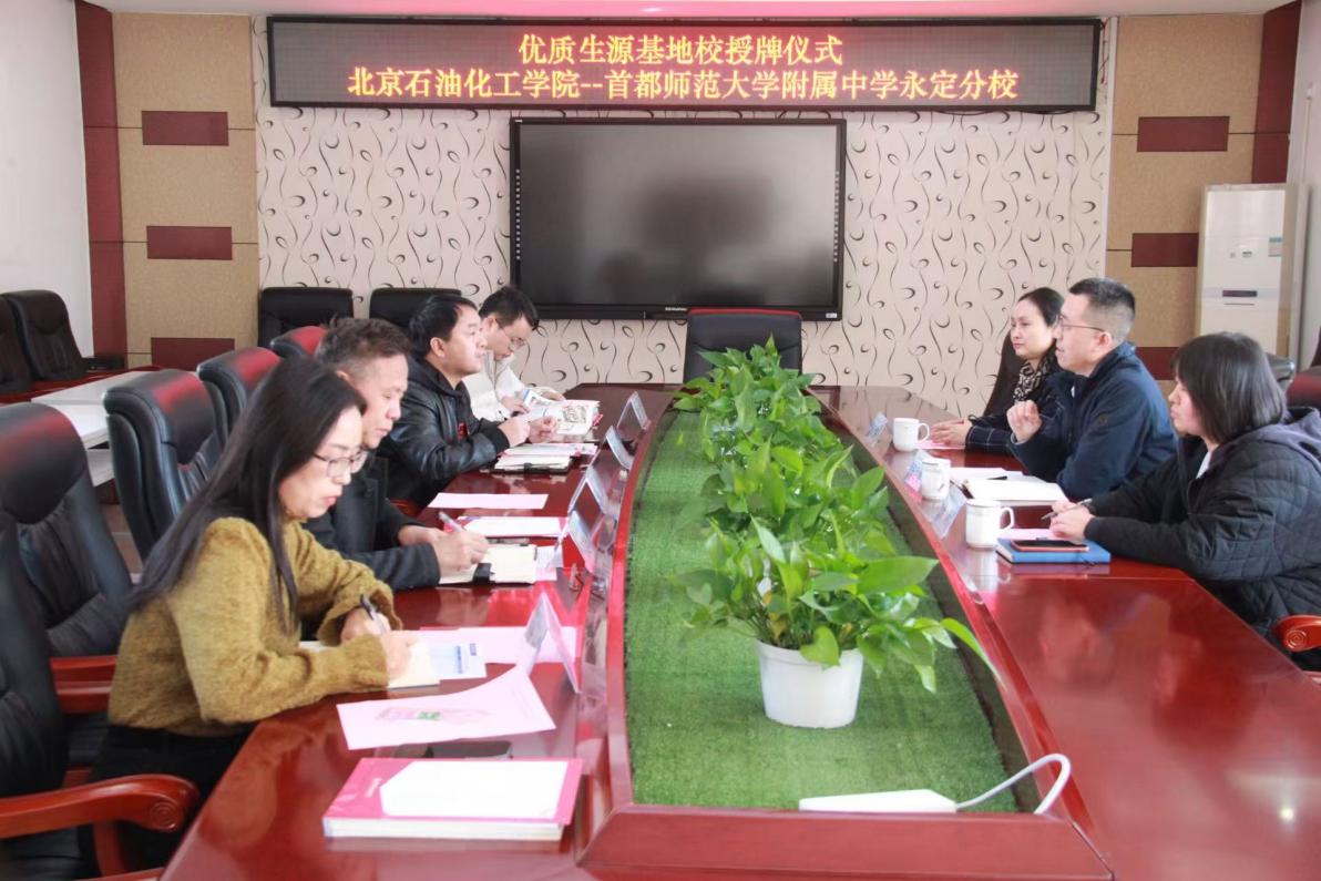 授牌儀式前,雙方進行了親切友好的座談交流。招辦主任張世博從北京石油化工學院的辦學歷史、學科建設、人才培養特色、校園文化生活及招生政策等方面進行了全面介紹。他表示,希望通過此次交流,雙方能在人才培養、招生宣傳、教育資源共享等方面加強合作,共同促進學生全面發展。